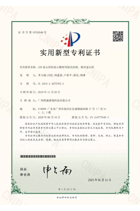 睿視實用新型專利證書