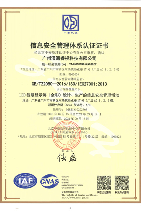 ISO27001中文證書